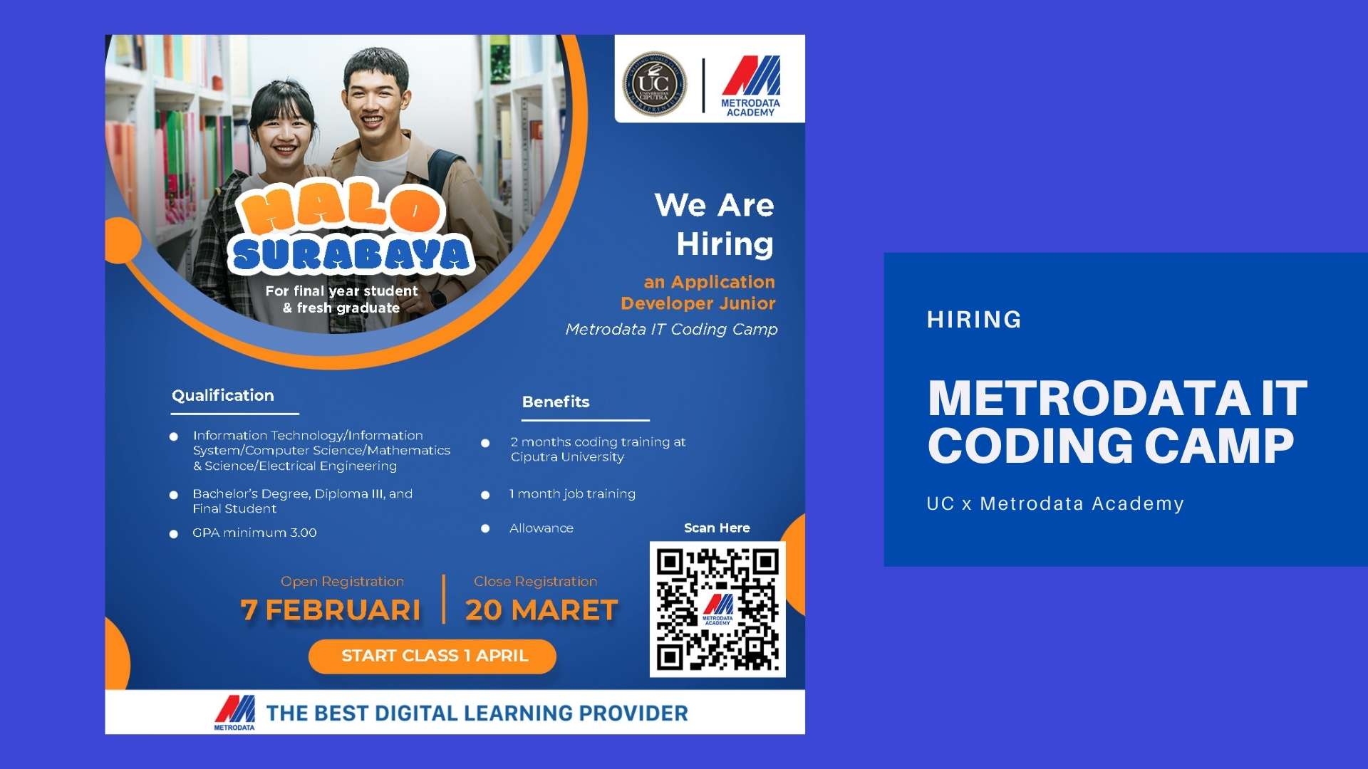 Metrodata Academy dan @universitasciputrasedang mencari calon Application Developer Junior melalui program Metrodata Coding Camp untuk semua teman-teman fresh graduate dan mahasiswa semester akhir di Surabaya dan sekitarnya, nih! Kalau kamu ngerasa cocok dengan kualifikasi kami, yuk jangan ragu-ragu untuk mengirimkan CV kamu ke atau klik link di profile kami. Pendaftaran dibuka dari 7 Februari sampai [...]
