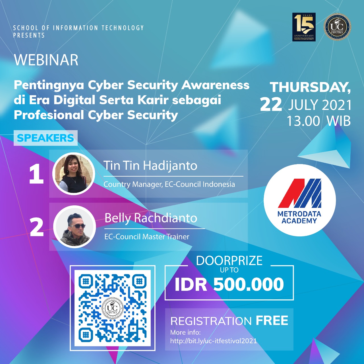 Metrodata Group sebagai salah satu perusahaan Teknologi Informasi terbesar di Indonesia berkomitmen ikut serta dalam mencerdaskan kehidupan bangsa, khususnya pengembangan potensi talenta digital, baik untuk IT Professional maupun mahasiswa. Dengan dukungan berbagai perusahaan Global seperti Microsoft, Oracle, EC-Council, dan lain sebagainya. Metrodata melalui anak perusahaan nya, yaitu Metrodara Academy bekerjasama dengan School of Information Technology (Fakultas Teknologi Informasi) membuka kesempatan bagi mahasiswa universitas ciputra dan mahasiswa perguruan tinggi lain, bahkan professional yang ingin mengembangkan kompetensi di bidang Teknologi Informasi agar mampu bersaing dalam menghadapi revolusi industri 4.0.